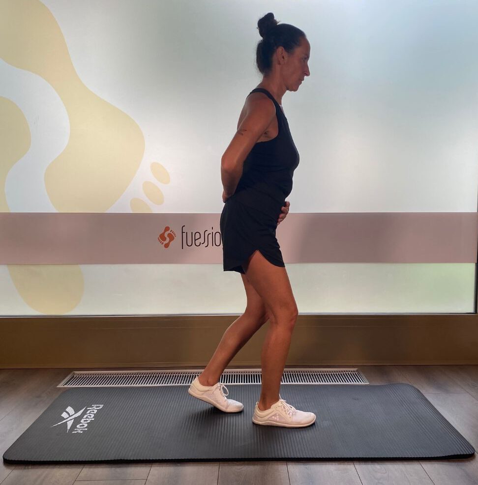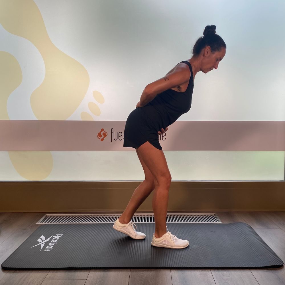- Endposition der Hip Hinge-Übung zur Kräftigung der hinteren Muskelkette.