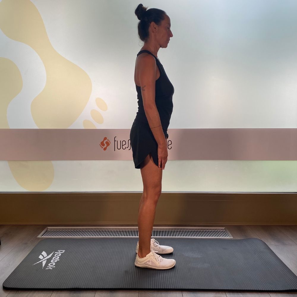 - Ausgangsstellung für den Jefferson Curl zur Verbesserung der Beweglichkeit der Wirbelsäule.