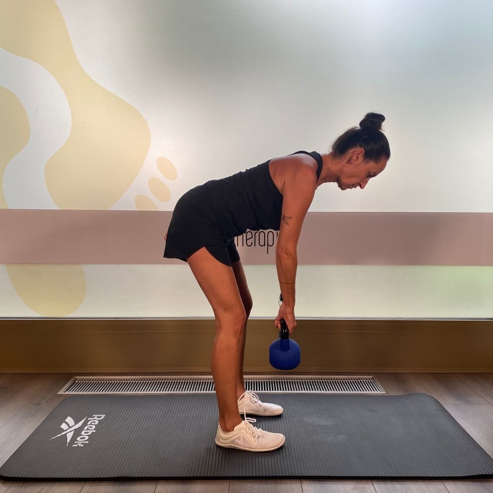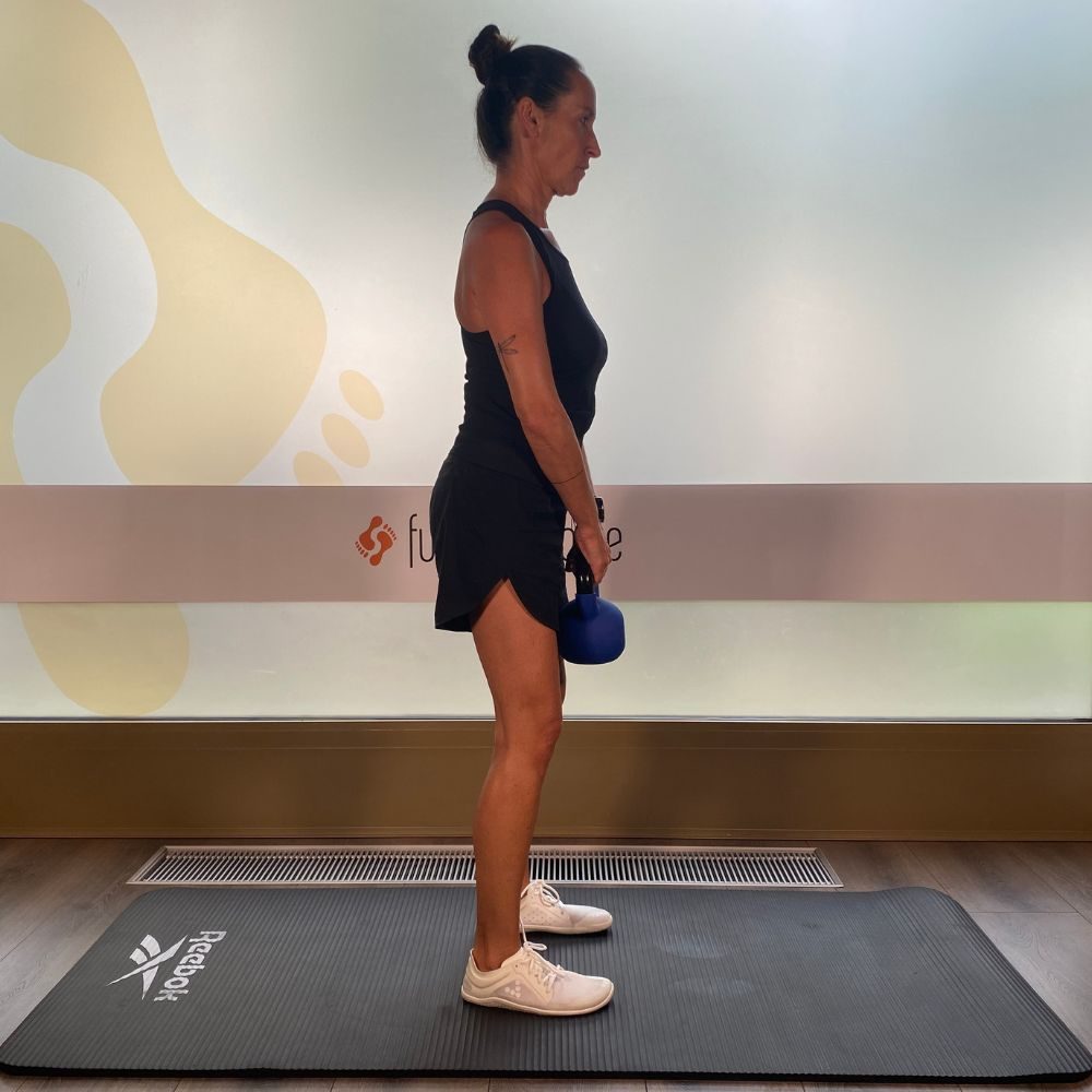 - Ausgangsstellung für das Kreuzheben mit Kettlebell zur Stärkung der hinteren Muskelkette.